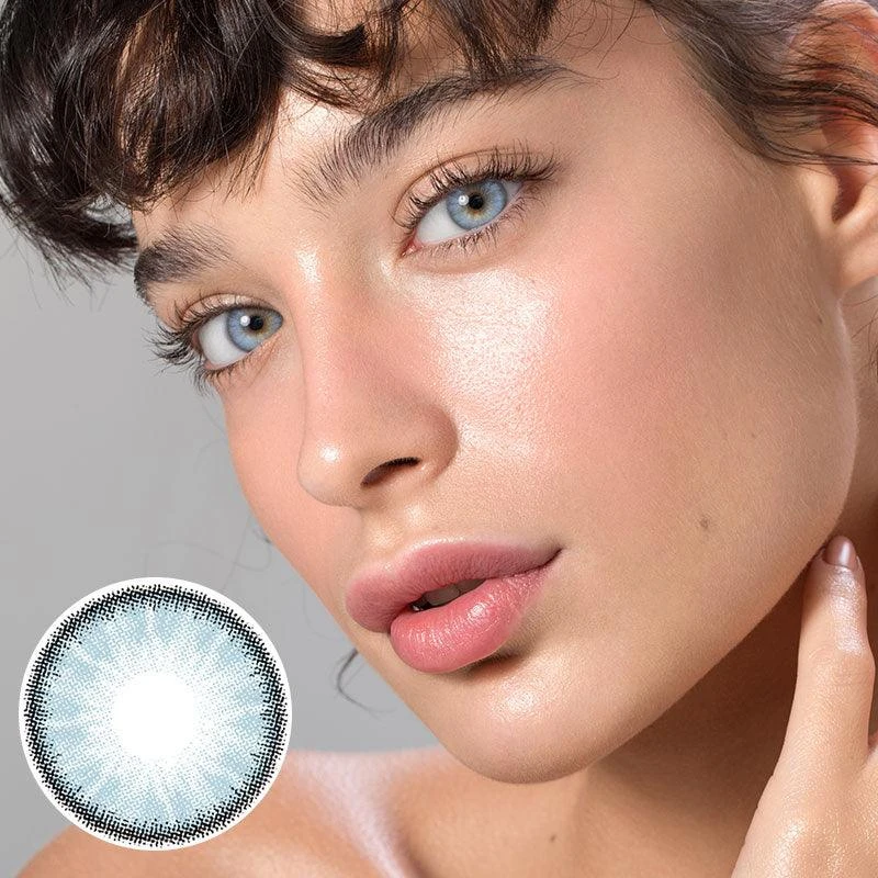 - An icy take on the popular blue eyes, the Glacier Blue colored contact lenses feature a glacial blue shade that’s perfect for a striking, piercing look. The color might be on the slightly brighter spectrum, light streaks bring home the design to a natural effect by allowing some of your natural eye color to peek through.